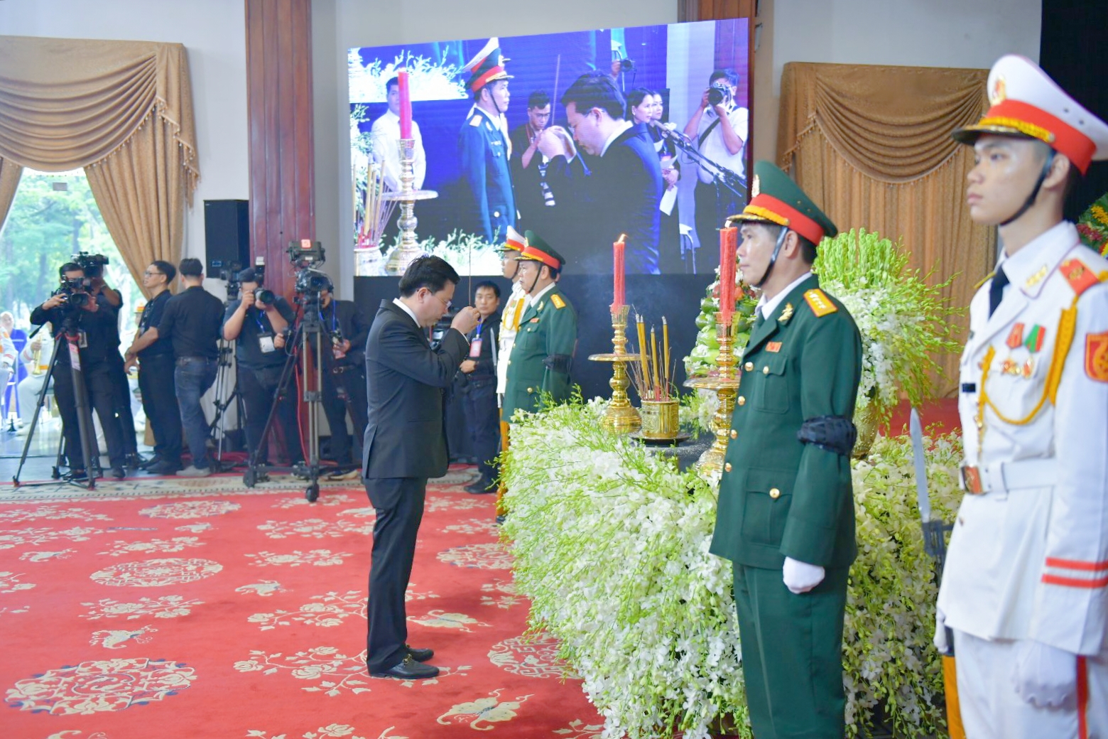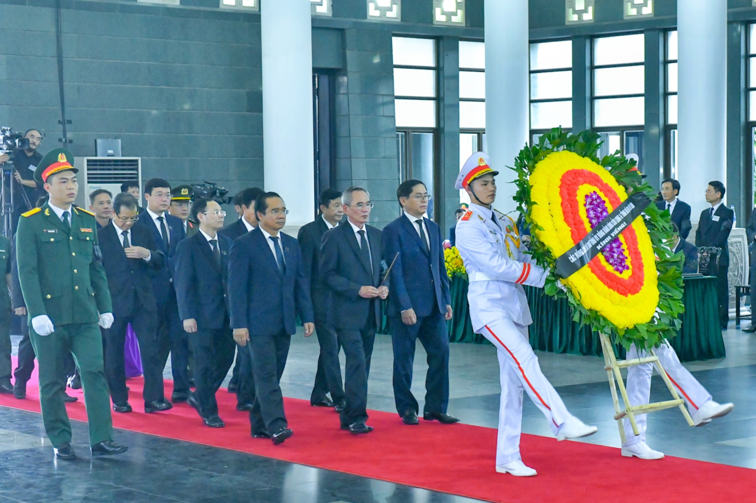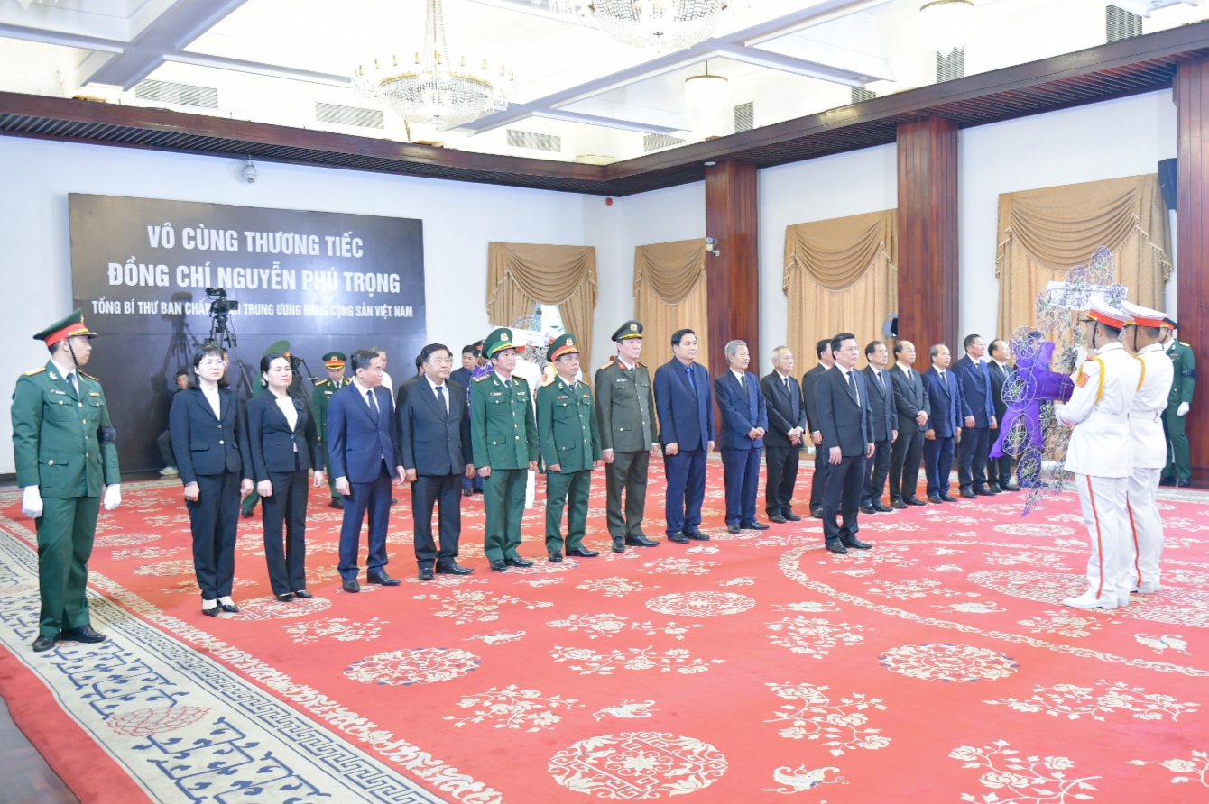 Tại Hội trường Thống Nhất, Thành phố Hồ Chí Minh, Phó Bí thư Thường trực Tỉnh ủy, Trưởng Đoàn đại biểu Quốc hội tỉnh – Nguyễn Thanh Hải cùng Đoàn đại biểu tỉnh đến viếng Tổng Bí thư Nguyễn Phú Trọng